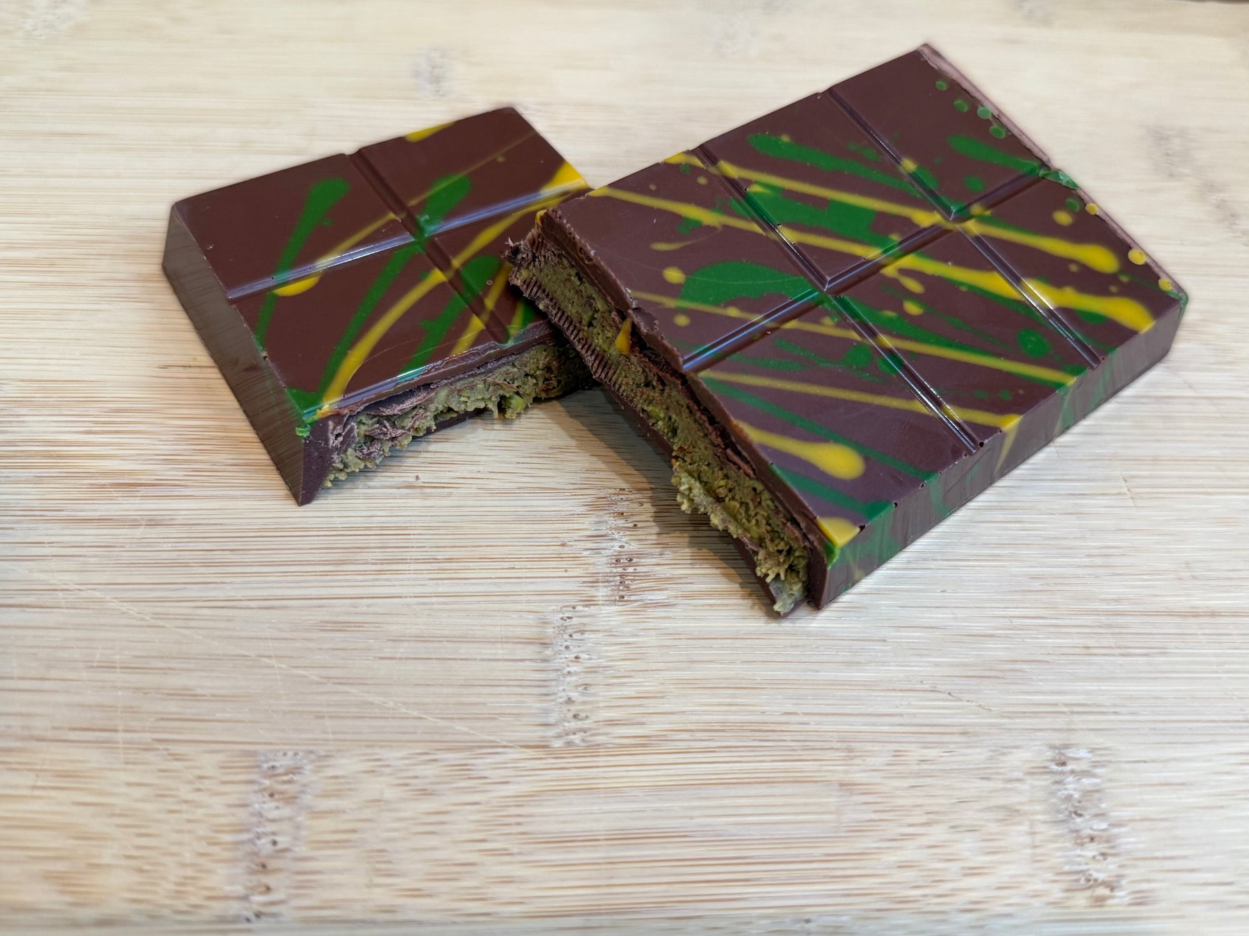 Indulge in the delicious blend of our 36% milk chocolate, filled with the crunchy delight of pistachios and the delicate sweetness of Kataifi pastry. This is the Azar bar that went viral for us on TikTok, it will be available in dark chocolate in 4 weeks.